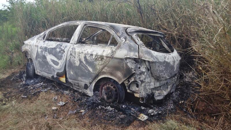 Os policias compareceram no local indicado e após a realização de buscas localizaram em meio a um carreador de cana um veículo totalmente incêndidado.
