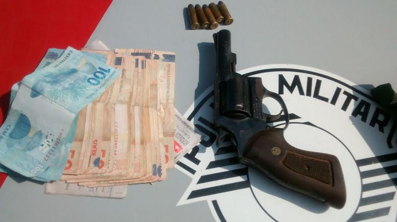 Rapidamente ambos foram abordados e em revista pessoal no primeiro, identificado como um comerciante de 37 anos, morador na área central da cidade, foi localizada a quantia de R$ 2.300,00 em notas fracionadas. Em buscas no seu carro foi localizado um revólver calibre 38, oxidado, da marca Rossi. com capacidade para 5 tiros. A arma estava com a numeração raspada, sendo localizadas ainda 4 munições intactas e uma deflagrada.