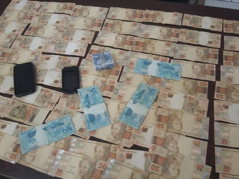 Com o homem foi encontrada uma grande quantia de dinheiro em notas fracionadas (R$ 4.500,00), além de dólares e celulares.