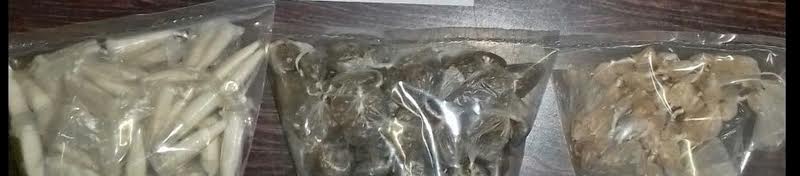 Os policiais verificaram o que ele havia dispensado e encontraram 45 invólucros com maconha, 59 pedras de crack e 91 pinos com cocaína.