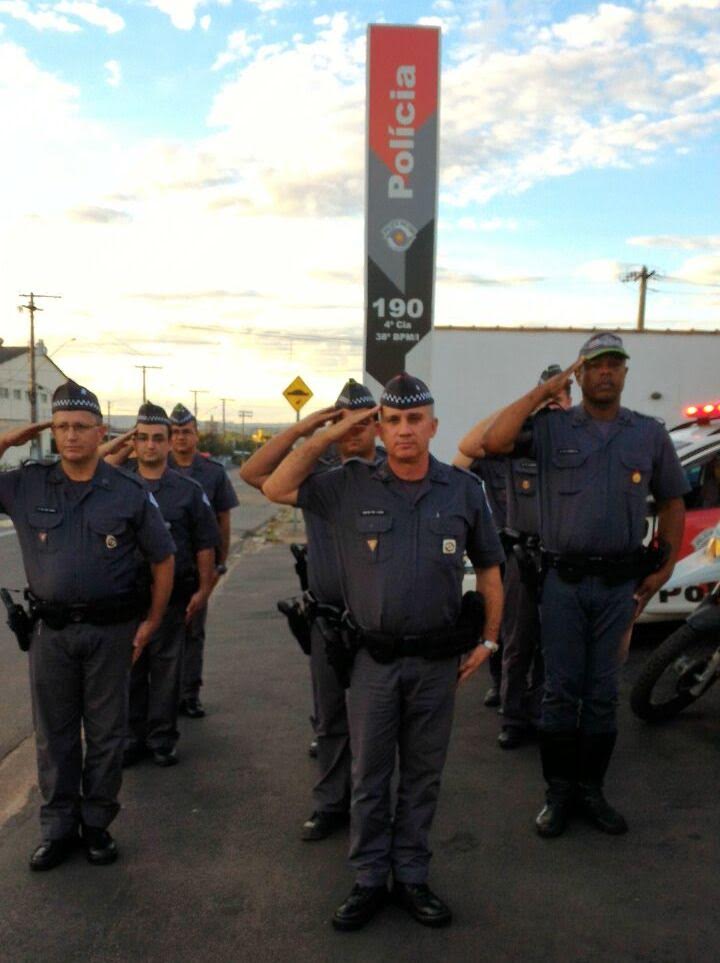 Com as sirenes das viaturas ligadas e sinal de continência os Policiais Militares da 4ª Cia/PM, sob o comando do Subtenente Fabio Leal Vanim, prestaram uma homenagem na tarde de terça-feira a mais um policial que morreu dando sua vida em prol da sociedade paulista.