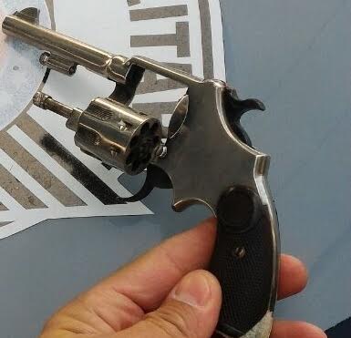 Por volta das 9 horas os policiais foram ao local e encontraram uma arma da marca Rossi 7 tiros, calibre 32, contendo duas munições intactas.