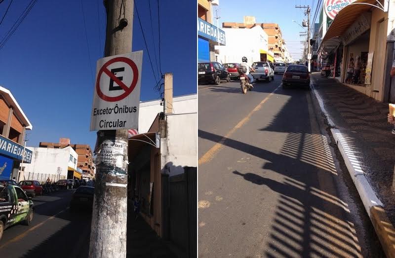 Segundo o ilustrado pela moradora por meio de foto, a placa de estacionamento para ônibus continua lá, mas a guia foi pintada de branco, como está ocorrendo nas guias no centro, porque se aproxima a festa da cidade. Porém ali está gerando muita dúvida ao motorista que inocente estaciona (porque pintaram de branco ), mas a polícia está multando.
