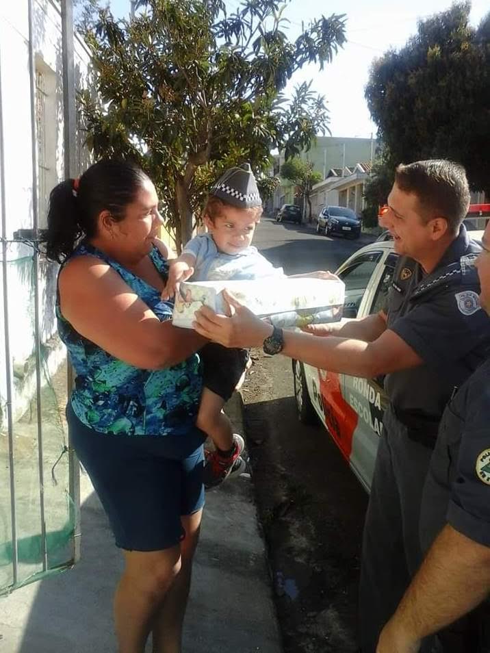 Os policias desempenharam desta vez uma missão diferente. Entregaram presentes a ele, e o momento mágico aconteceu, como o “casquete” (cobertura quadriculada, símbolo universal da Polícia no mundo todo), ele entrou na viatura da Policial Militar parecendo não acreditar naquilo, onde perguntava o que era cada equipamento e cada botão.