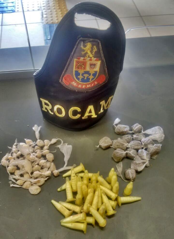 Na abordagem o menor estava com uma bicicleta, mas não houve tempo para fuga. Em revista pessoal os policiais da equipe ROCAM (Rondas Ostesnsivas com Apoio de Motocicletas) encontraram dentro de um estojo escolar que o menor portava 6 porções de maconha, 33 pinos com cocaína e 53 pedras de crack. Foi localizado também dentro de um porta objetos acoplado na bicicleta mais 8 porções de maconha.