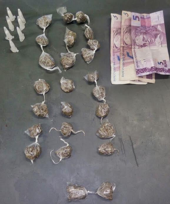 O rapaz foi abordado pela rua rua Hans Beran, bairro Serra D'Água, durante partulhamento preventivo, quando foi avistado em atidude suspeita. Os policiais localizaram em suas mãos 25 porções de maconha e 7 pinos contendo cocaína, além de uma certa quantia em dinheiro proveniente do tráfico de drogas.