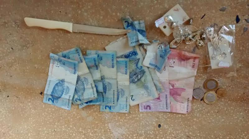 Na terça-feira (14) policiais militares do Rádio Patrulhamento abordaram pela rua João Miranda Salgueiro um homem de 33 anos, morador na área rural de Santa Rita do Passa Quatro, após ser avistado em atitude suspeita. Em sem bolso foi localizada uma certa quantia em dinheiro, algumas bijuteriras e uma faca de cozinha.,