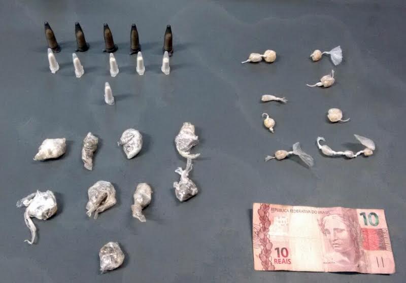 Por volta das 18h40 de terça-feira (11) policiais militares da ROCAM (Rondas Ostensivas com Apoio de Motocicletas), ao adentrarem pela rua João Simão, bairro Cristo Redentor, avistaram um menor, que saiu correndo, indo ao canto de muro. Rapidamente foi realizada a abordagem, tratando-se de um morador no bairro de 17 anos. Próximo a ele os policiais localizaram 09 invólucros com maconha, 11 pinos contendo cocaína, 11 pedras de crack e uma certa quantia em dinheiro.