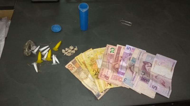 Um jovem de 19 anos foi preso em flagrante por tráfico de drogas por volta das 22h30 de sábado (22). A abordagem aconteceu quando ele saía de um terreno na rua Vitório Colli, Vila Maria, por policiais militares da Força Tática. Em seu poder, enrolado em sua blusa, foi localizado um involucro plástico contendo 10 pinos com cocaína, 05 porções de maconha, 08 pedras de crack, além de uma certa quantia em dinheiro em notas fracionadas.