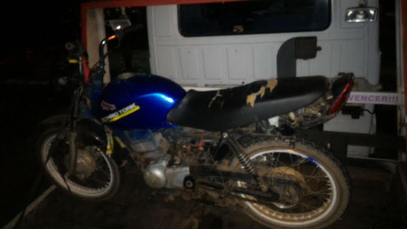 Os policiais verificaram que a moto estava sem placa e com os números de chassi e motor suprimidos.