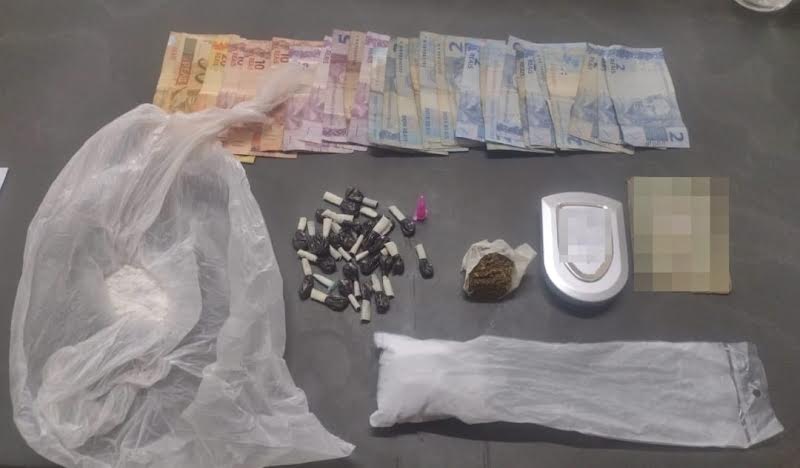 Em buscas no local, foi localizado, uma balança de precisão, uma certa quantia em dinheiro em notas fracionadas, embalagens plásticas de cocaína pronta para venda, eppendorfs contendo cocaína, (totalizando 25 gramas pronta para venda), sacos contendo um total de 135 gramas de cocaína a granel, um tablete de maconha pesando 17 gramas.