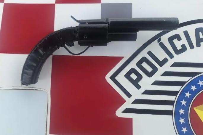 Policiais Militares lotados no município de Descalvado, durante patrulhamento pela Avenida Das Flores, avistaram um indivíduo conhecido nos meios policiais por praticar roubos e furtos a estabelecimentos comerciais. Ele ao perceber a presença da viatura, mudou repentinamente de direção e correu em direção à mata próxima, deixando cair um simulacro de arma semelhante a um revólver que estava em sua cintura.