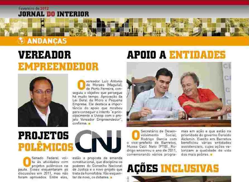 O Jornal do Interior da UVESP (União do Vereadores do Estado de São Paulo), na edição deste mês (página 22), registrou destaque para a conquista e empenho do vereador Maguila como “Vereador Empreendedor”, na criação da Lei Geral Municipal para a Micro e Pequena Empresa em Porto Ferreira.