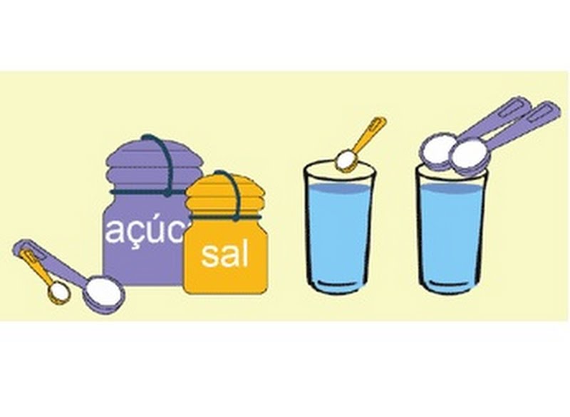 Misture em um litro de água mineral, filtrada ou fervida, a uma colher de café de sal e uma colher de sopa de açúcar. Misture bem e dê à criança em pequenas colheradas.