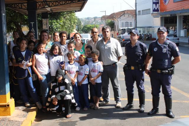 Nesta quinta-feira foi a vez da distribuição de adesivos e panfletos em semáforos e num bloqueio educativo de trânsito na praça da Matriz.