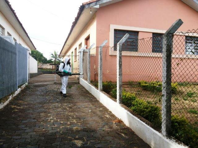 Os agentes realizaram nebulizações na região da Emei Professor Alcides Salzano e Centro de Especialidades Médicas e Imagens Dr. Américo Montenegro, além de 400 residências num período de dois dias.