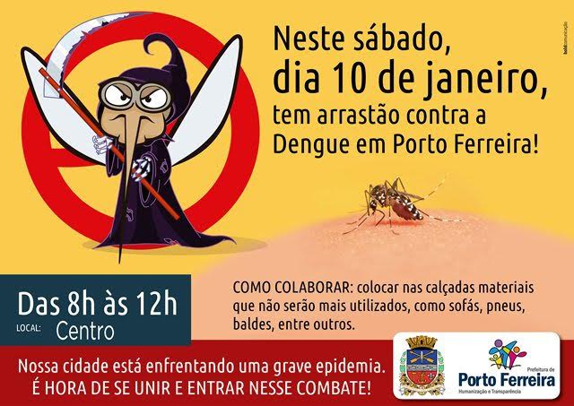 Porto Ferreira está com uma epidemia de dengue. A situação foi confirmada pelas autoridades de Saúde e as ações para o combate ao avanço da doença, que já haviam se intensificado nos últimos meses de 2014, terão uma mobilização maior ainda a partir de sábado (10/01), quando será iniciado um período de arrastões (veja calendário dos bairros no final do texto).
