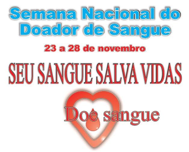 Horário para doações de sangue: De 2ª à 6ª feira das 07:00 às 16:00h e aos sábados das 08:00 às 12:00h.